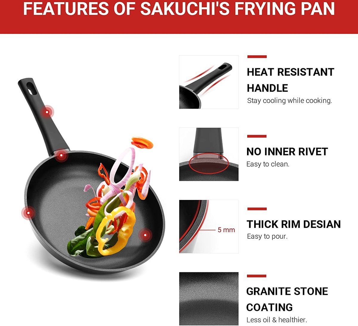 Herentals induction pan set has a 3-layer non-stick layer, which keeps it 100% free from exposure to harmful substances. And it is heavy and sturdy, for long-term use. The pan set has cool-touch ergonomic and heat-resistant handles that ensure comfortable and safe cooking.