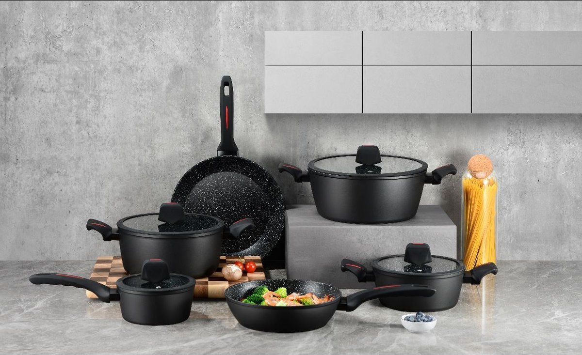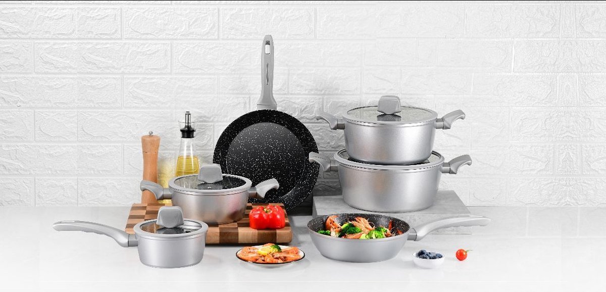 A very extensive set from Royalty Line is a good first step towards good and healthy cooking. The pans have a high-quality marble coating and are suitable for all heat sources, including induction and oven . In short, a pan set that you should not miss in your home!