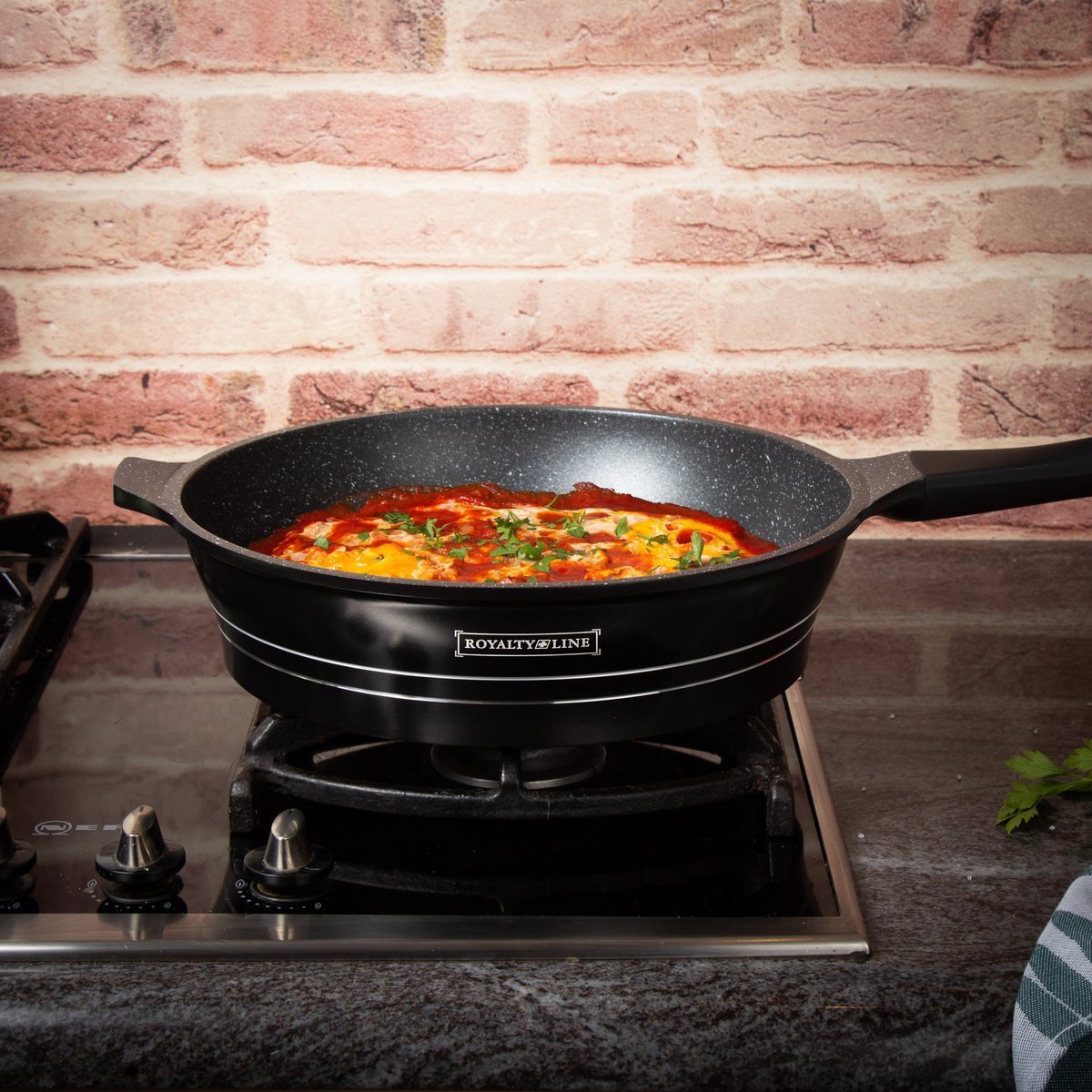 A top level, harder pan with 10x Ultra Non-stick performance. Even the simplest recipes get the star treatment with Royalty Line’s unique and stylish kitchen pan set. Triple coated with our mineral coating for the ultimate non-stick experience – without oil and butter. Food slides around on the pan and nothing sticks, even after years of use.
