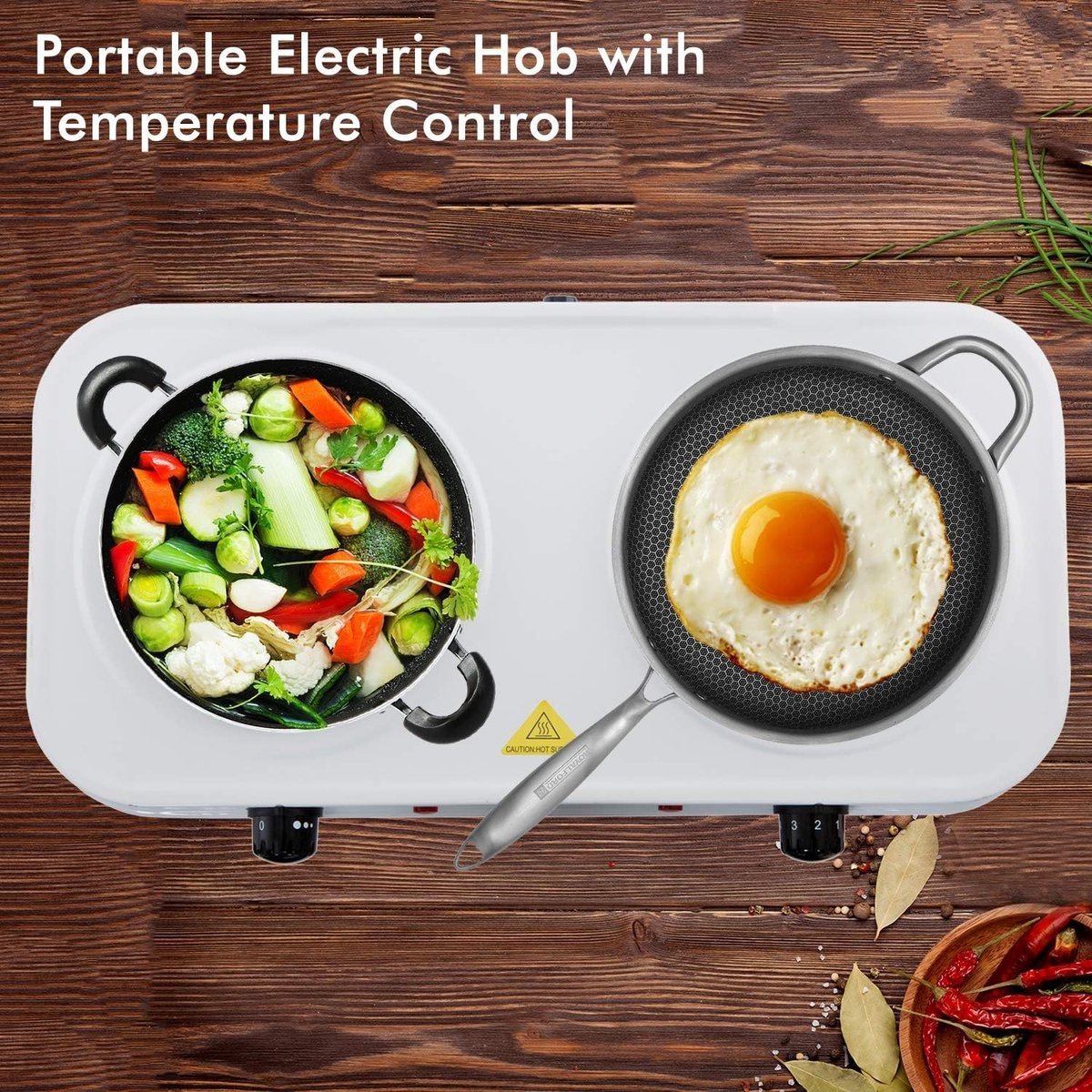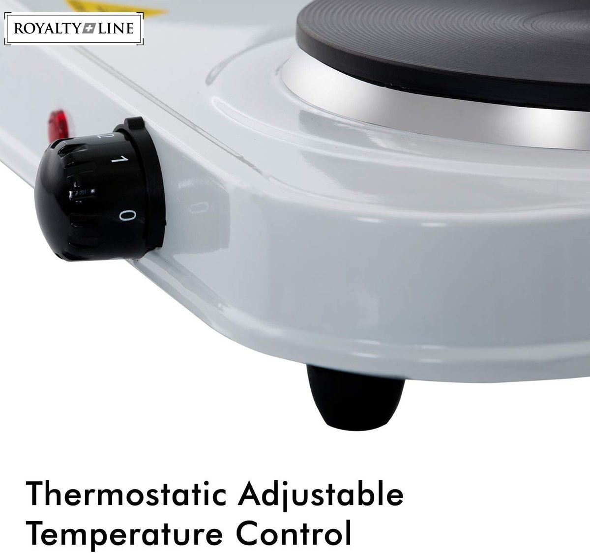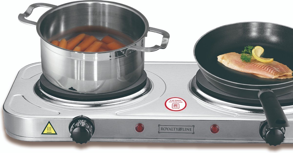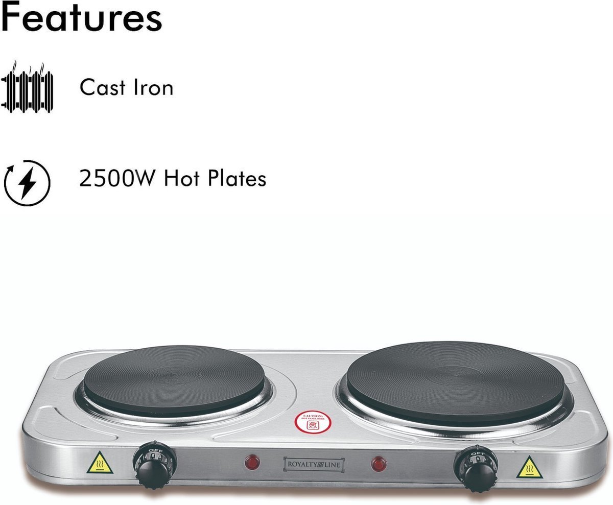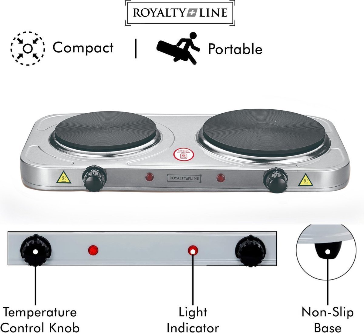 Royalty Line 2500W Portable Double Electric Hob. Set the hob to the highest setting (position 5) for 3 to 5 minutes before using it for the first time.