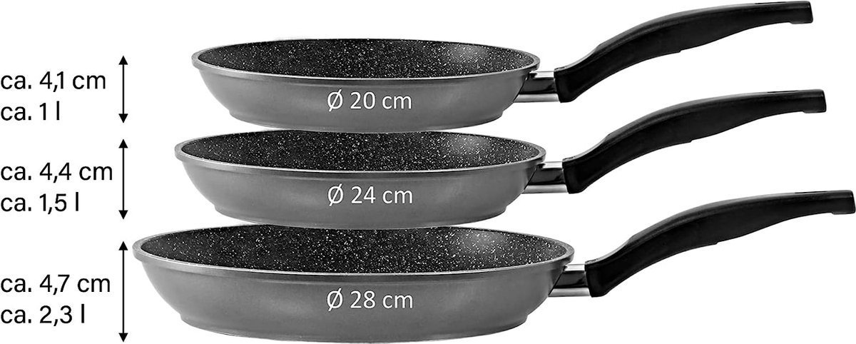 Set Forged Alu Non Stick Marble Coated ø 20/24/28 cm Frypans / Soft Tuch Handles / Gas / Elctric / Ceramic / Halogen / Induction