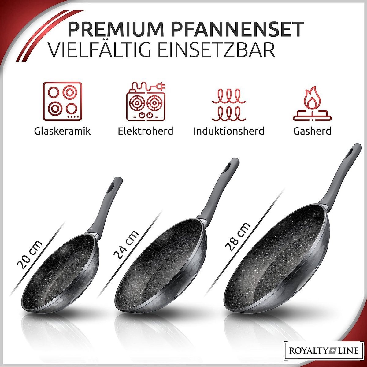 Set of Royalty Line non-stick frying pans 20 – 24 – 28 cm