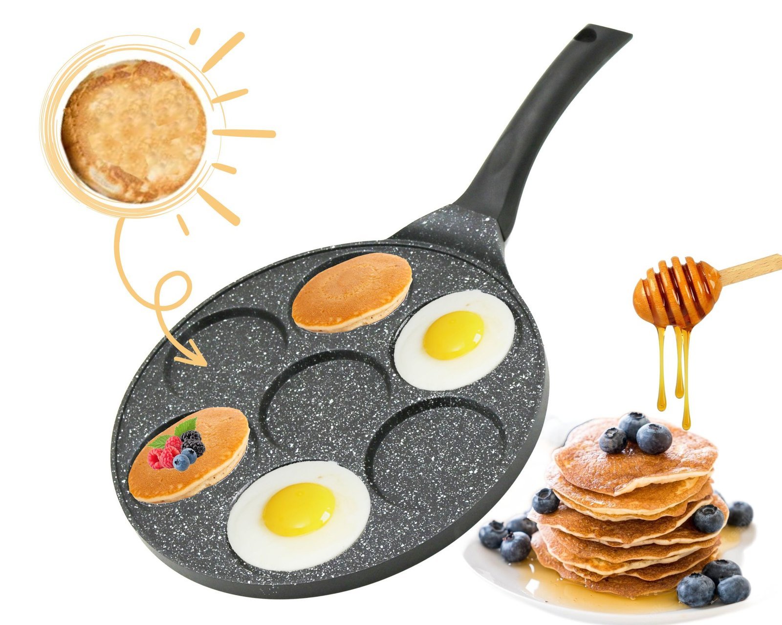 Pancake pan smiley emoji – 7 Hole – Marble Coating – Cheffinger