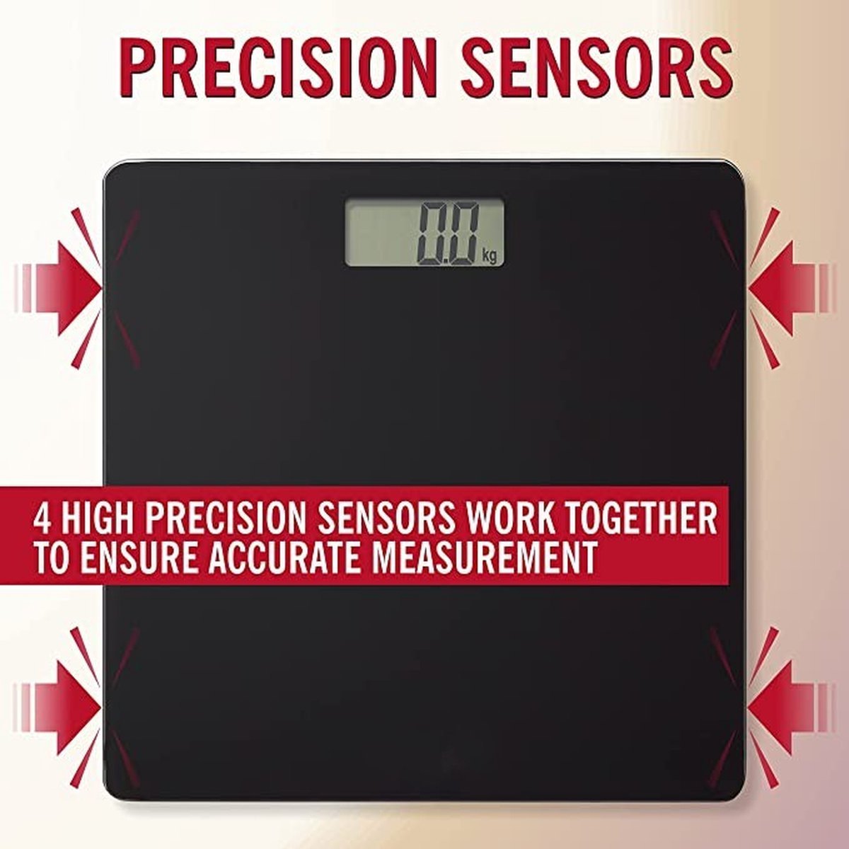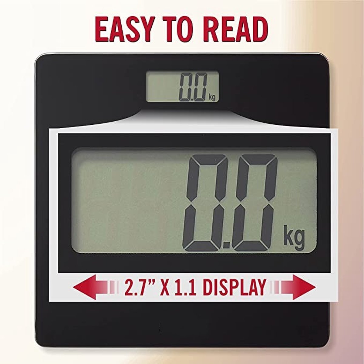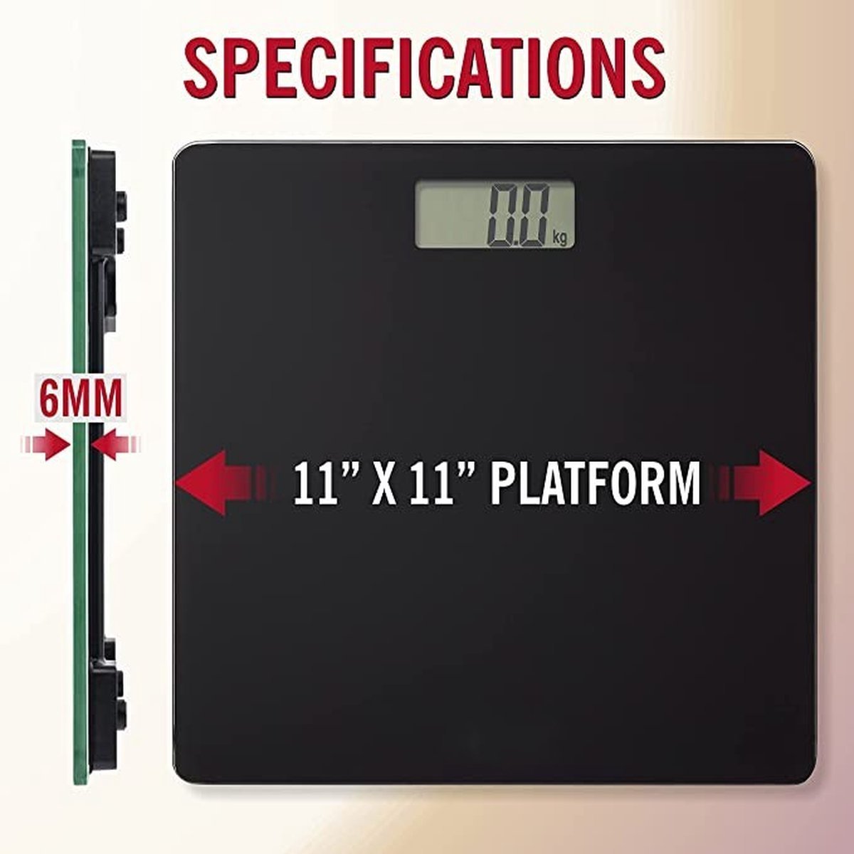 A classic square black platform of 30 cm works well in any bathroom and is a feast for the eyes and the perfect size. Measurements can be read with ease on the 8.2″ x 4″ LCD screen which displays weights in pounds, kilograms or stones. With a capacity of 180 kilos you can get the most out of this scale, while readings are displayed accurately to within 0.1 kilo.