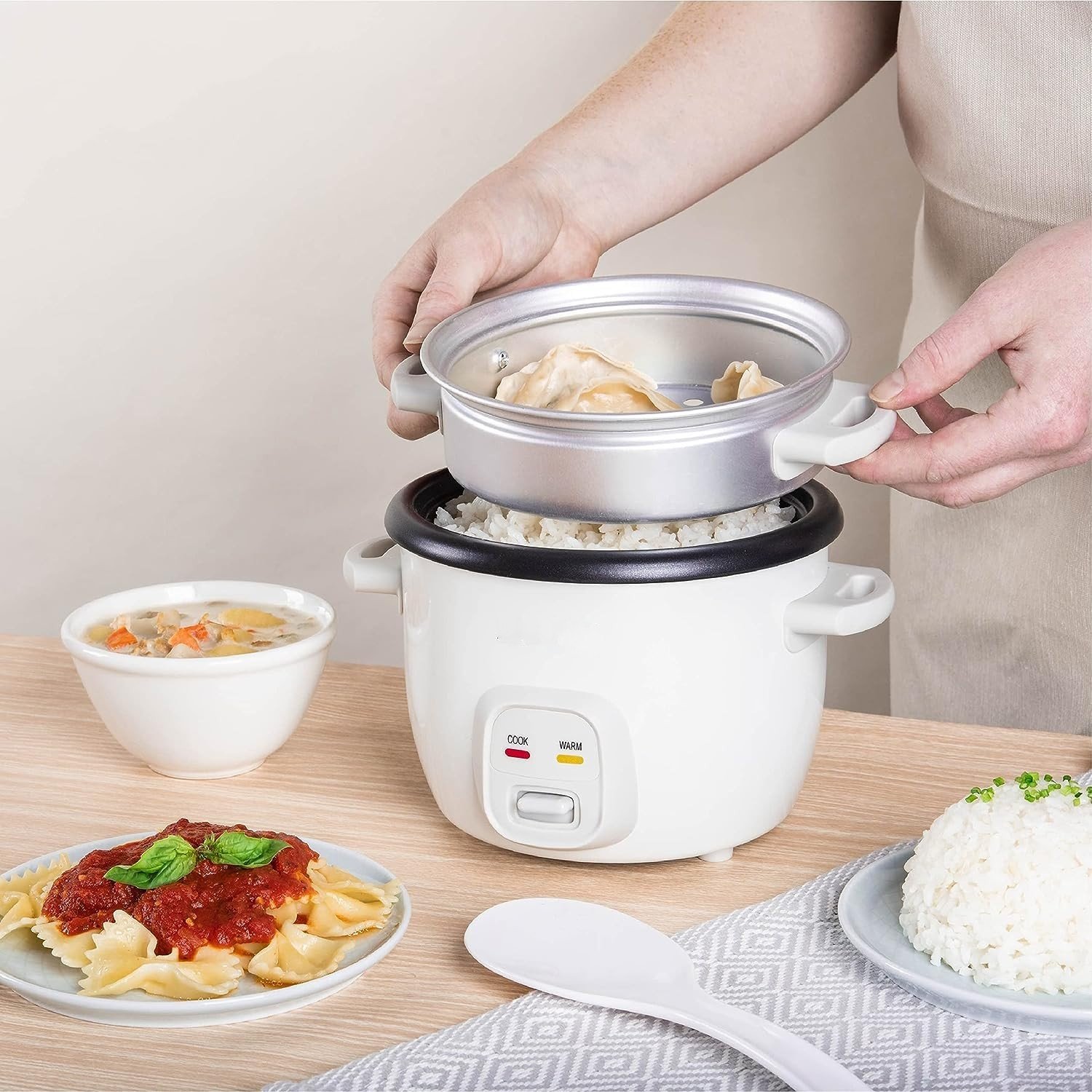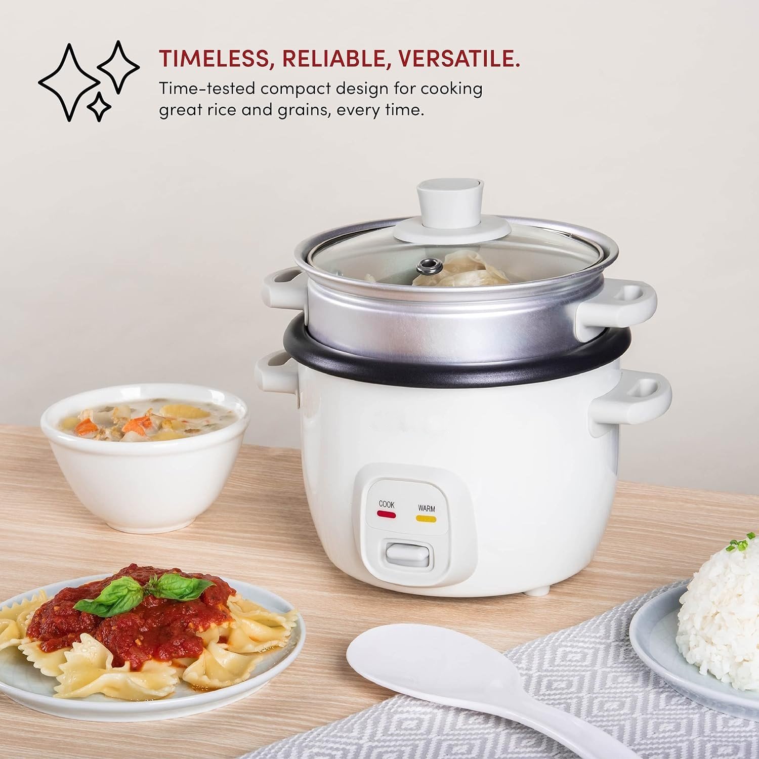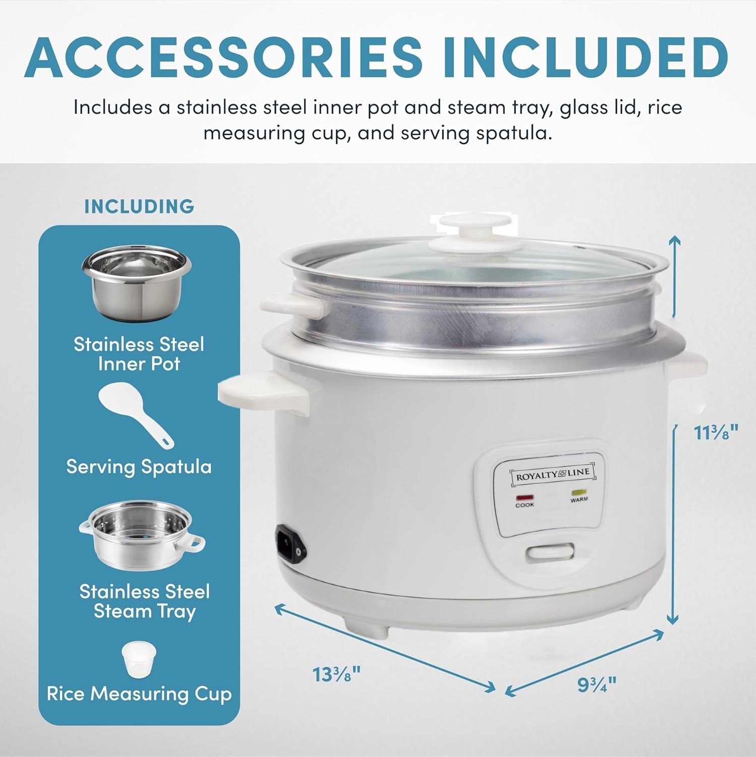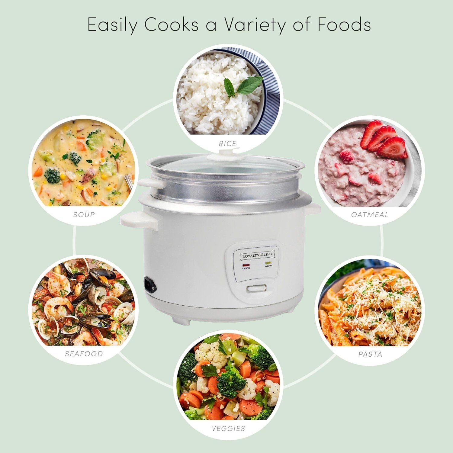 Rice Cooker with Steamer 2.2 L – Stainless Steel Steamer Basket – Royalty Line