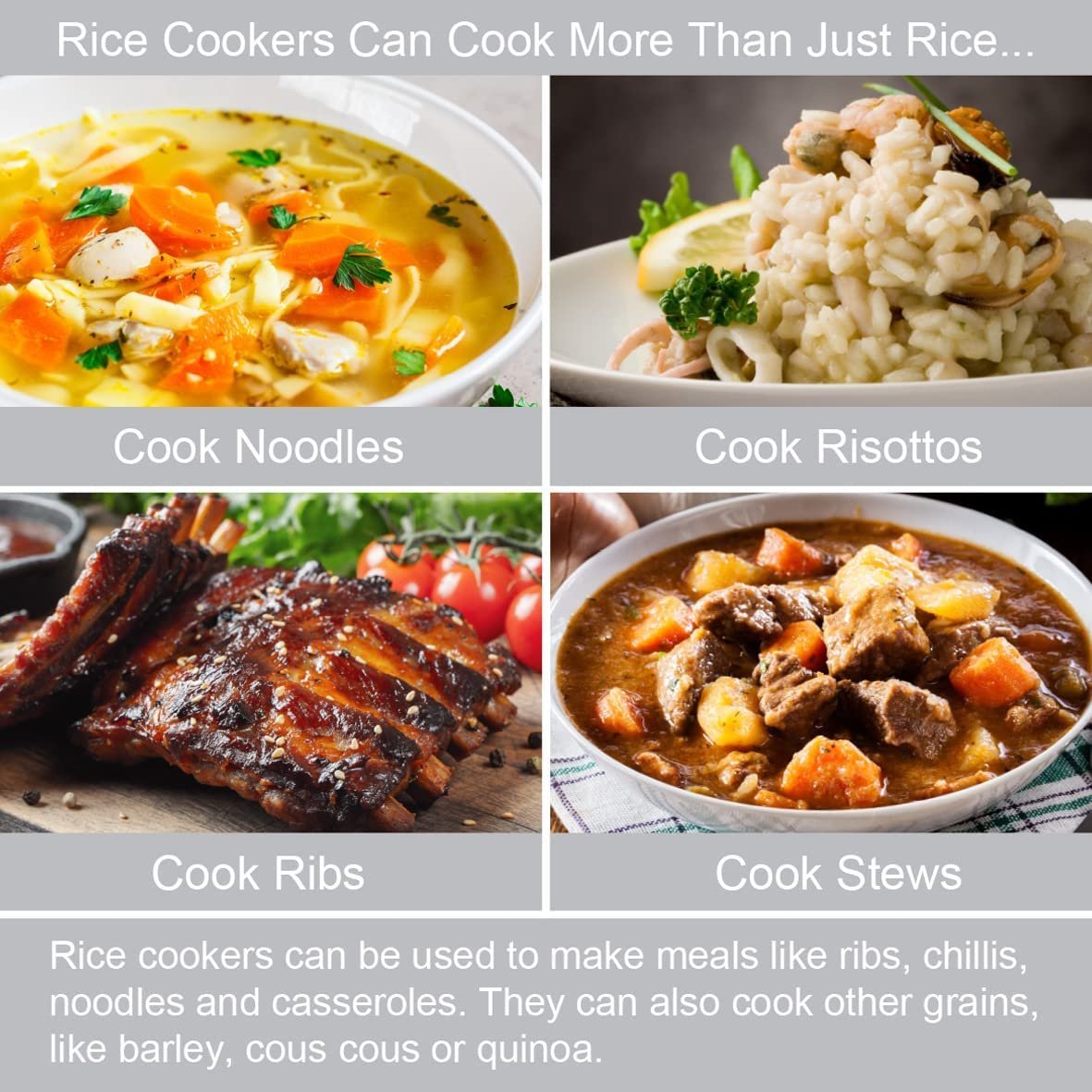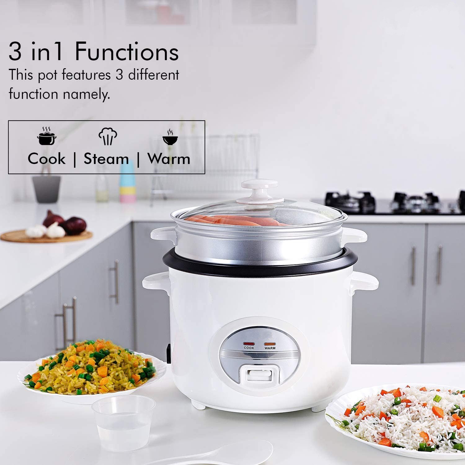 Use the rice cookers to keep your rice, or other food, warm for several hours! It can be switched from the normal cooking function to a keep warm function, making it ideal for parties and buffets.