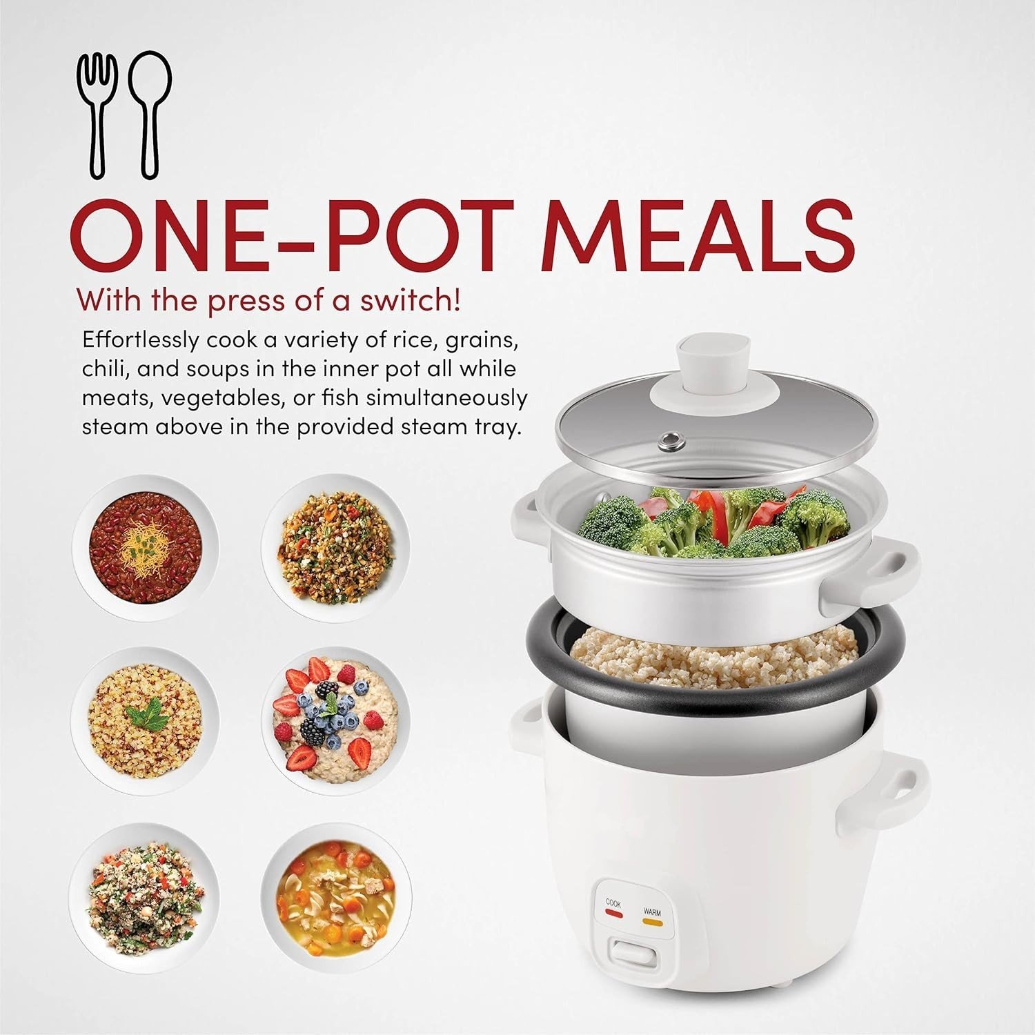 The unique steam tray accessory delivers perfectly cooked vegetables, poultry, fish and more in one compact cooker. Enjoy a delicious meal every night of the week without compromising on quality!