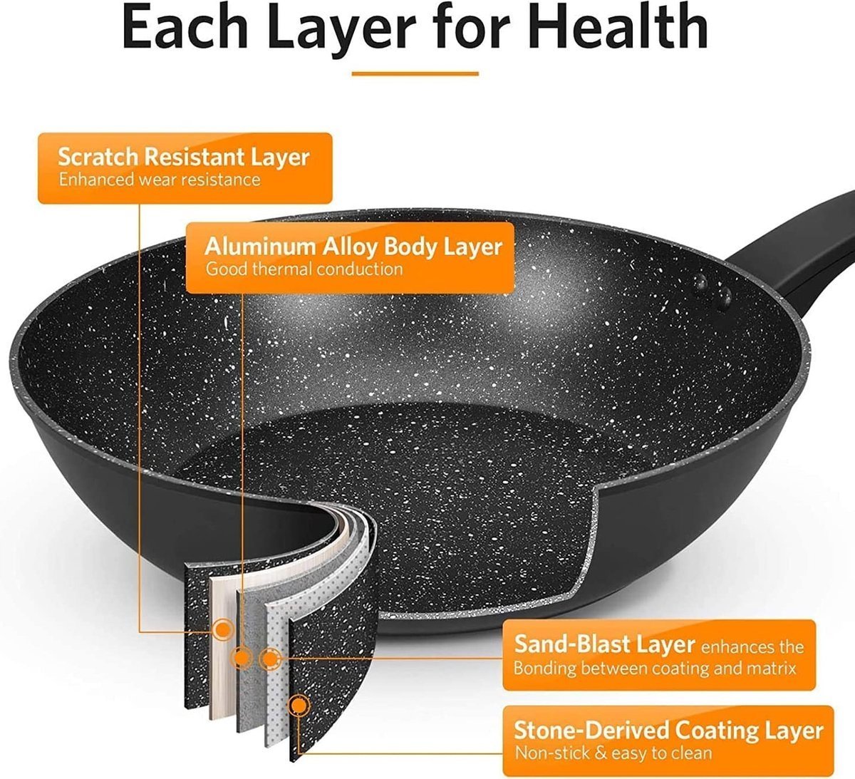 Inside: Superior quality PTFE non-stick marble coating, PFOA FREE